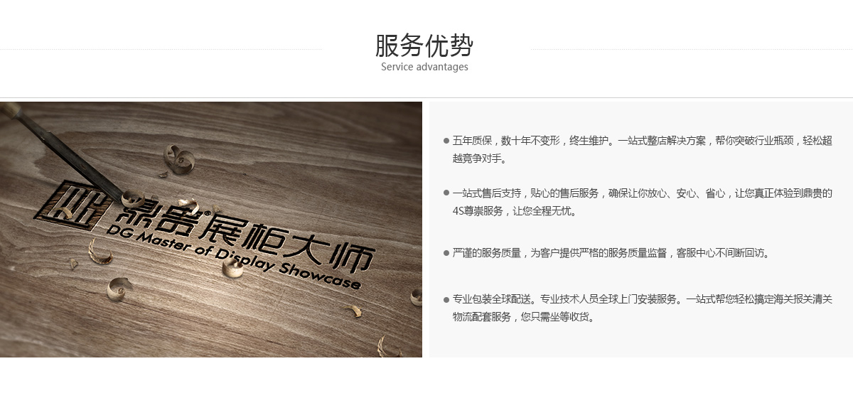 民族品牌,行业标杆,专注高端展柜定制20年!中国展柜行业协会会长单位,鼎贵展柜大师,已成行业焦点,为品牌保驾护航,拥有良好信誉与口碑。高端源自底蕴,鼎贵拥有一支二十年经验的木艺匠师,稳重掌控大局,关注每个细节的完美!鼎贵通过设计、材质和工艺的整体艺术来为品牌展示打造高端品位和独特魅力,让品牌展示成为一种艺术。高端展柜定制以质量,可信,创新,专属以及永恒这五个核心要素,策划定制专属于您品牌形象的内涵,我们以顾客为中心,以一站式整店方案策划输出为重点,强调专属、个性化定制,为客户带来源源不断的竞争优势。
