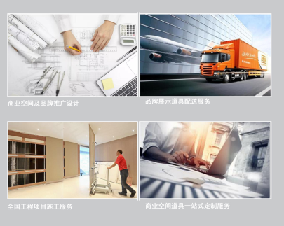 商业空间及品牌推广设计,品牌展示道具配送服务,全国工程项目施工服务,商业空间道具站式定制服务。