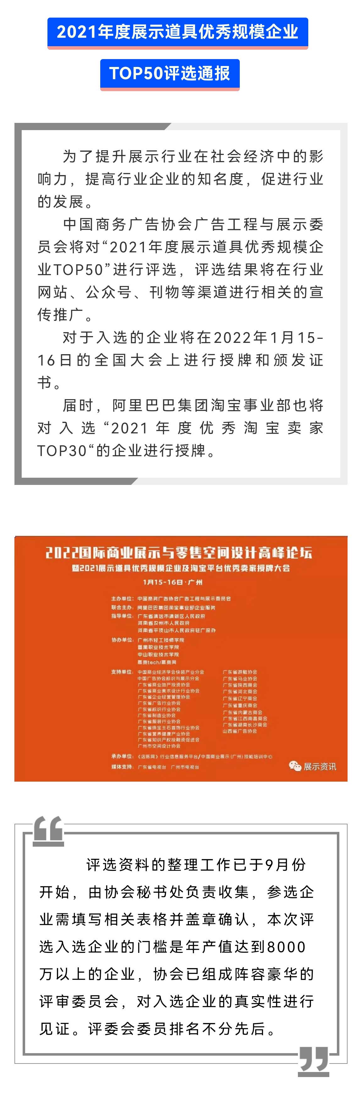 2021年度展示道具优秀规模企业评选活动正在进行中!